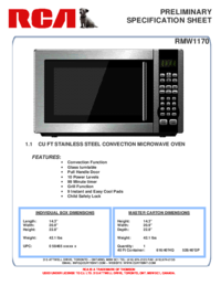 Uživatelské manuály a uživatelské příručky pro Konvektomaty RCA RMW1170. Poskytujeme 1 manuály pdf RCA RMW1170 ke stažení zdarma podle typů dokumentů: Uživatelský manuál