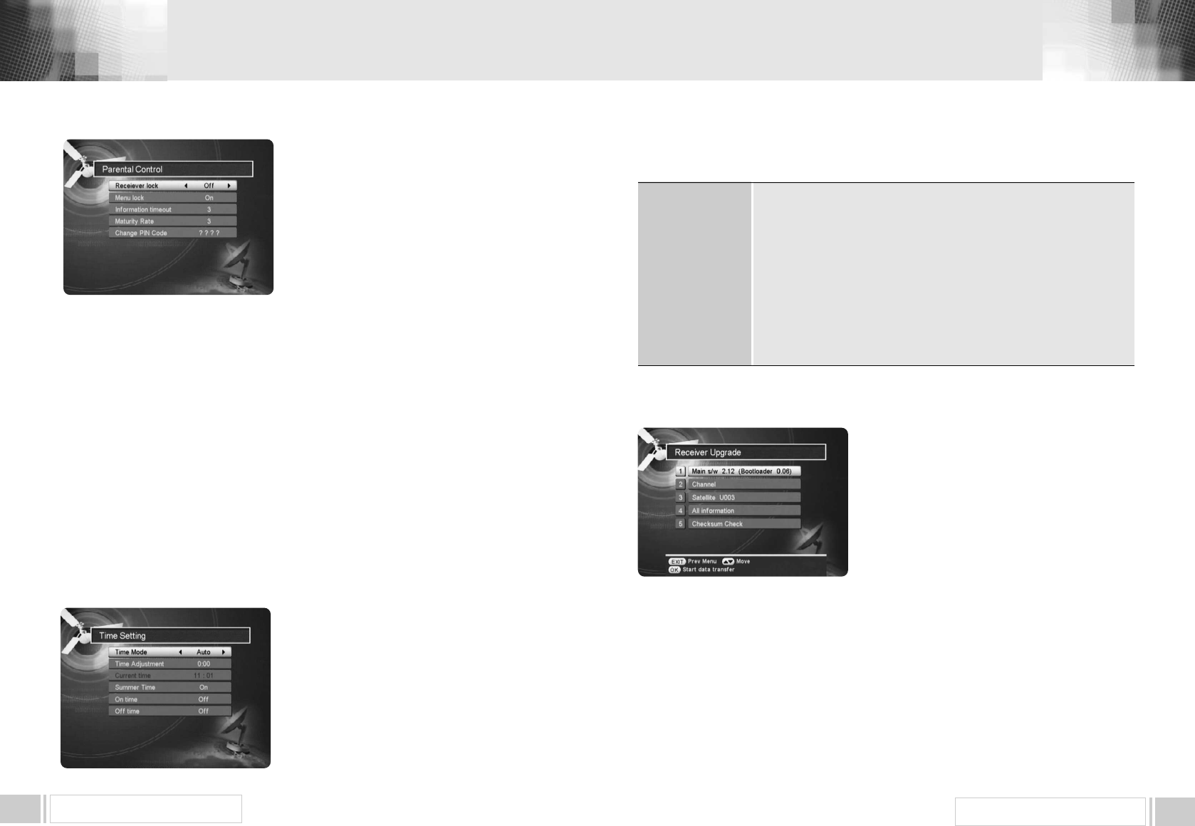 Select “Time Settings” item in the “ Receiver Settings”